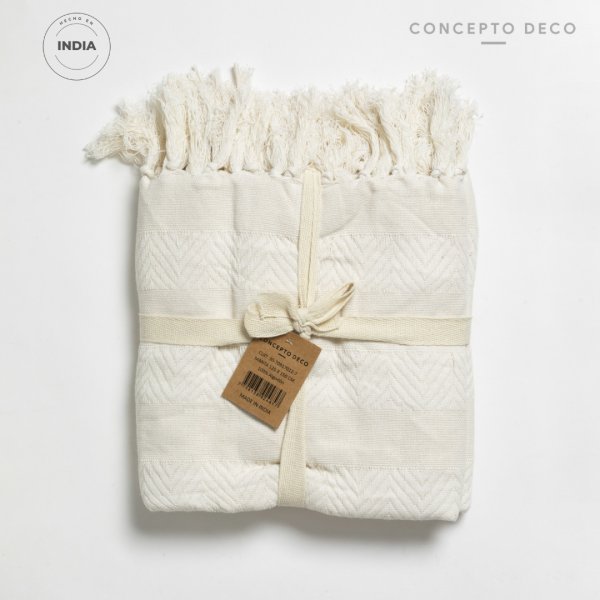 MANTA SOFÁ INDIA JAIPUR WAFFLE ALG BLANCO 125X150CM